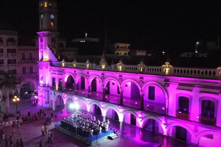 En el marco del mes de la lucha contra el cáncer de mama, la noche de este jueves 16 de octubre el ayuntamiento de Veracruz iluminó de color rosa el palacio municipal.